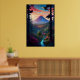 Upplev den häpnadsväckande synen från kant i skogen, där man blickar mot en enorm vulkan i avstånd. Skogens grönt går stick i stäv med vulkanens stora närvaro, som skapar en scen av glöd och . Njut av skönheten i den digitala konsten, där vulkanens harmoni och storhet sammanfaller i ett mesmarande panorama.