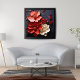 Den här fantastiska teckningen har en livfull bukett av röda och vita blommor, bland annat peonier, ro, poppies och dahlias, mot en dramatisk svart bakgrund. Det djärva färg och realistiska detaljerna skapar en fängslande kontaktpunkt som säkert förbättrar vilket rum som helst. Den här vackra blommigten finns på en rad olika produkter, och skapar den perfekten för att ge dig lite elegans hemma eller på kontoret.