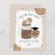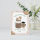 Illustration av en chokladkaka med ansikte, armar och ben som bär glasögon och en studentmössa stående bredvid en galen chokladmilkshake toppad med kakor och sprinkles omgiven av konfetti. Texten säger, "Du är en smart kaka"