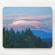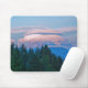 Inställningen sol kastar färg över marken och belyser molnen kring berget Rainier.