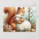 En söt ekorre kramar ett får vykort