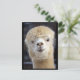 En söt fluffy ansikte i en alpaca vykort