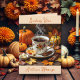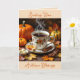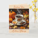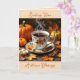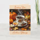 Söt Fall Mated (hälsningskort): "Skicka höstvälsignelser" för en vän eller familjemedlem. En illustration av en höstscen med ett kopp av varmt kaffe, orange, pumpor och Höst löv.