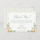 Gratulera till ditt lilla glädjespaket med vårt söta lilla barnskor Pastel Grönt Rand Tack för ditt kort. Den här charmerande designen har mjuk pastellgrönt och gult färg, delikat päron- och grönt-illustrationer och en aning vismisk elegans i bakgrunden av grönt rand. Idealisk för både gender-neutralt och fruktiga babyduschar. Det här tackkortet tillför en färsk, roligt och söt vibe till din babydusch firande.