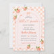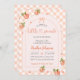 Välkommen din lilla prinsessa eller prins med stil med vår söta lilla persika baby shower inbjudan. Denna inbjudan har akvarell persikor och blommor på en ljus persika gingham bakgrund. Det perfekta temat för en könsneutral, persika vår eller sommarinspirerad baby shower.