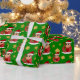 En julomslutning papper med en illustration av en söt leende lycklig Hispanic/Latino- eller asiatisk småbarn-pojke, han bär en röd och vit Jultomten hatt och håller i Julklapp; med en redigerbar textmall för ditt namn eller meddelande, en juldesign med en sömlös grönt med stjärnor, en helgdagar som är utformad med en sömlös bakgrund med stjärnor
