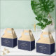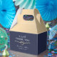 Enkelt, elegant, minimalt, modernt, modernt Blåbröllopsfack för en svensk Tack med guld-rep.