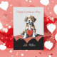 En charmig valp som vilar på en röd hjärtformad kudde, utstrålar sötma och kärlek i en mysig miljö.