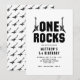 För den lilla som firar sin första milstolpe-födelsedag. "ONE STEN black and white Electrical Guitar themed 1st födelsedagsbjudande. Anpassa inbjudan att göra den till din egen. Det finns tre textrutor som kan ändras. Designtexten i den första rutan kan behållas som den är eller redigeras, och tillsammans med de andra två rutorna kan du inkludera en egen text.