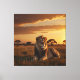 En stor lejon klumpa på en grassy savanna canvastryck