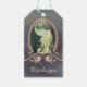 En stor påk i guld och grönt. Fågeln fångas med sina magnifika, detaljerade fjädrar, förklädda med dekorativa blomningar och krångliga förskönelser. Dess viktigaste poise understryks av fjädrarnas konstnärliga utformning, som visar sig i ett harmoniskt samspel mellan guld och rikens grönt. Påsen omges av en oval ram som påminner om ett tvinnat rep. Ram är hjärtligt designat och dekorerat med små, ömtåliga löv, ge det som en naturlig men elegant karaktär.