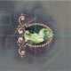 En stor påk i guld och grönt. Fågeln fångas med sina magnifika, detaljerade fjädrar, förklädda med dekorativa blomningar och krångliga förskönelser. Dess viktigaste poise understryks av fjädrarnas konstnärliga utformning, som visar sig i ett harmoniskt samspel mellan guld och rikens grönt. Påsen omges av en oval ram som påminner om ett tvinnat rep. Ram är hjärtligt designat och dekorerat med små, ömtåliga löv, ge det som en naturlig men elegant karaktär.