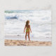 En stor värld - liten flicka i stranden vykort