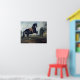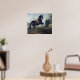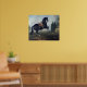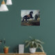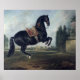 En svart häst som utför Courbette Poster