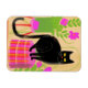 En dålig svart katt på en rosa som bar bord med husväxter, artificiell konstgjord.
