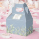 En snyggt bröllopsförmånslåda med delikat vattenfärgsfärg lämnar på en dammig blå bakgrund som ramlar in namn och tack för ditt budskap. Ett perfekt sätt att tacka gästerna! Designad av Thisisnotme©