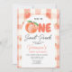 En Sweet Peach Födelsedagsfest Boho Gingham Inbjudningar