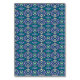 En symmetrisk mönster av blå motiv på en textilvar bordsnummer