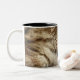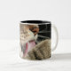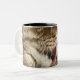 En tabby katt som slickar hans paw. Två-Tonad mugg
