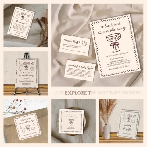 Fira den förestående ankomsten med snyggten "En Tini One är på väg"-inbjudan till babydusch! Med en handritad vågigt ram, innehåller denna lekande doodle-stil-design en espresso martini med en chic coquette-bugg, vid sidan av charmerande illustrationer av baby-essentialer som flaska och nappar. Den varma bruna paletten färg och handskrivna stil-typsnittet tillför ett trendig som ändå är mysigt, perfekt för en modern babydusch. Idealiskt för mamma att bli firande, blandar detta unika inbjudan elegans med lite roligt. Anpassa med din händelseinformation och ange tonen för en oförglömlig samling!