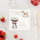 En Tini One är på väg mot Espresso Martini Baby Shower Napkins - en unik och vacker babyduschsertapor med en espresso martini försedd med en mocha brun coquette-båge och en vintage baby rockande häst leksak, båda vattenfärgsillustrationer. Elegant, handskrivet skriptteckensnitt vid sidan av det eleganta blockteckensnittet i brun ton. Redigera den här mallen för babyduschseringar med din egen händelseinformation.