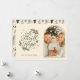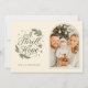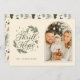 Ett modernt Helgdag av Arch-foto-kort med en strill av hopp i mörk grönt skrift. På motsatt sida finns mönster i grönt och marinskrot och gräs löv.