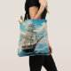 Ett segelfartyg av trä går genom vågar under blå himmel och under skäliga vädermoln på denna vackra säck. Perfekt för alla som kärlek seglar.