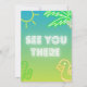 Livlig och energisk inbjudningsdesign som kombinerar tropiska element med djärva neonfärger. Det är perfekt för evenemang som poolpartyn, luau-fester, födelsedagsfiranden eller något tillfälle där du vill tillföra en känsla av kul och spänning