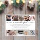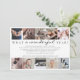 Det här moderna julkortet har tio av dina favoritfoton runt ett eget "årets sammanfattning"-meddelande i mitten. Och rubriken är en mix av elegant text och skrivstil i minimalistisk svart färg: "Vilket underbart år!". Baksidan av kortet visar en fullstor bild på din familj. Anpassa designen med ditt familjenamn, individuella namn och flera egna foton. Skicka dina bästa önskningar till din familj och vänner. Det här kortet blir en vacker souvenir och påminnelse om dina speciella stunder i livet!