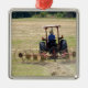 En ung pojke som kör en traktorplockning julgransprydnad metall