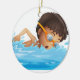 En ung pojkesimning med gula goggles julgransprydnad keramik
