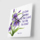 En vacker bukett av iris blommor med skript fyrkantig klocka