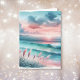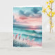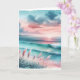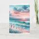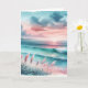 Födelsedagskort som kan vara personlig. Söt strandscen i pastellblått och rosa. Oceanen vågar vid sandkusten med ömtålig havsblåsning i ogräs på en grumlig dag när sol går.