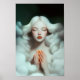 Illustration av en vacker kvinna som mediterar i molnen, stil i fantasi, digital konst