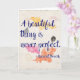 En vacker sak är aldrig perfekt är ett motiverande och inspirerande citat från ett gammalt ordspråk. Citatet gör en fin gåva till ett nytt hem eller en trevlig dekoration på kontoret. Perfekt för kreatörer och hantverkare.