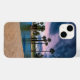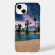 En vacker solnedgång i Encanto Park med lush grönt handflatan träd och sjö i Phoenix Arizona.