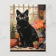 En vacker svart katt i huset vykort