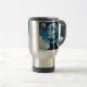 Ufologikaffe kopp. En vacker kvinnlig utomjordisk varelse med stort blått ögon tittar upp i rymden vid stjärnorna och planeterna.