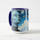 Ufology personlig kaffe kopp. En vacker kvinnlig utomjordisk varelse med stort blått ögon tittar upp i rymden vid stjärnorna och planeterna.