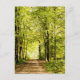 En väg som täcks av löv i en magicaskog vykort