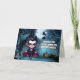 Lägg till en touch av spöklik kul till din Halloween-firande med detta bedårande vampyrkort! Med en söt vampyrkaraktär som står framför ett spökhus och en kyrkogård, och en lekfull fladdermus som bär en pumpa ovanför, är detta kort perfekt för vänner och familj. Det interna meddelandet önskar en "fantastisk Halloween", vilket gör det till ett förtjusande och minnesvärt sätt att sprida högtidsglädje.