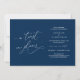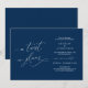 Detta är ett bröllopskort för uppskov, med kortets titel, en vändning i planerna, i romantisk elegant, klassisk, Navy Blue kalligrafi tema.