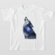 Den här t-shirt-konstruktionen har en stor varg som svävar vid en vibrerande, stjärnande galaxi. Den unika turen är att konstellationerna själva verkar bildas inom vargens silhuett och skapar en vacker och kraftfull syn. Det är en design som talar till vilden, kosmos och kopplingen mellan dem.
