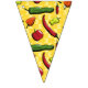 En peri-peri-, friggitello-, habanero-, rocoto-, jwala- och shishito chili-peppar dekoreras med mönster från den region där de ursprungligen odlades eller vanligtvis äts och sitter i gultens bakgrunden med mönster inspirerad av tatueringar som bärs av ursprungsbefolkningar i Amazonas för att skapa en roligt som upprepar mönster som återspeglar ursprungen och spridningen av dessa Smaklig och ofta kryddig frukt.
