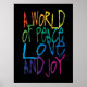Ord "En värld av fred, kärlek och glädje" i färg av regnbågen. Världsfreden börjar med oss alla. Konstnär Margaret Loftin Whiting.