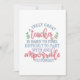 En lustig lärardesign där man säger: "En verkligt underbar lärare är svår att ta itu med och kan inte glömma". Perfekt lärare ger dig, vänner, släktingar eller kolleger.