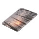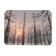 En blek vintern ligger sol bakom det stora träd som mörk. Deras myggade grenar, med undantag för damning av snö, och pastellgolderna, pinkarna och blåsorna från solnedgången himlar ses som genom ett drömt dimma. I förgrunden faller snöflingor mjukt.