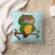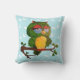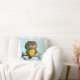 Denna illustration av en vis gammal uggla är en akrylmålning på vattenfärgspapper. Jag skannade den ursprungliga målningen på 11"X14" och tog bort bakgrunden. Fram- och baksidan av kuddarna är blekblå med ett vitt silhuettmönster av blad. På framsidan finns min ljusgröna och gula uggla-illustration. Barnramsan En vis gammal uggla finns på baksidan av kuddarna.