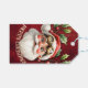 Ett viskigt steampunk Jultomten mot en djup röd bakgrund, försedd med grå löv och bär. Tomten bär en röd hatt med vit trim och ett par steampunk-stil-glasögon med gyllene accenter. Hans vita skägg och rosiga kinder bidrar till hans glupska utseende. Ord "GOD JUL" skrivs i ett dekorativt teckensnitt grund i bilden.