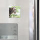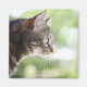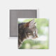 En vuxen tabby katt startar ut från ett fönster magnet